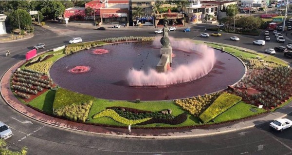 Con el agua roja amaneció La Glorieta de la Minerva #Guadalajara #8marzo2020 #LaMinerva pic.twitter.com/fu8qjRp8Rn
