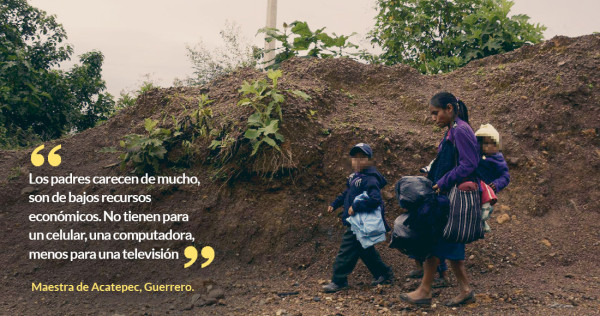 En Acatepec, en la región de la Montaña guerrerense, el 97.6 por ciento vive en pobreza (Coneval, 2015). “No se vio más allá, a los lugares más marginados. Los niños carecen de muchas herramientas y recursos. A lo mejor lo vieron como una salida rápida, pero no se adentraron más allá. La comunidad está marginada, y hay niños que viven en colonias más alejadas”, comentó la profesora sobre las clases en línea implementadas por el Gobierno federal.