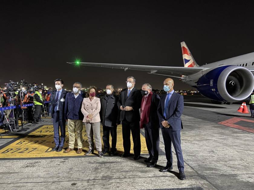 “Aterrizó vuelo de British Airways procedente de Moscú, vía Londres, con las 200 mil vacunas Sputnik V”, informó a las 22:46 horas, el titular de la Secretaría de Relaciones Exteriores (SRE), Marcelo Ebrard Casaubón, quien agregó “Primer embarque derivado de la reciente conversación de los Presidentes López Obrador y Putin. Nuestra gratitud”.