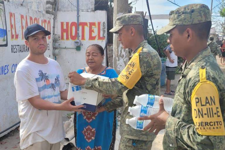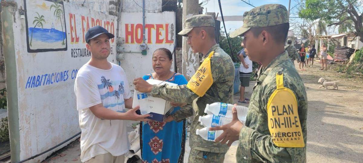 En lo alto de la colonia Vista Hermosa, en Acapulco, el señor Sabino De la Cruz agradece la canasta básica que el Ejército le lleva como parte del apoyo a las personas damnificadas por el huracán Otis; sin embargo, a este hombre de 51 años lo que más le preocupa es reconstruir su vivienda.
