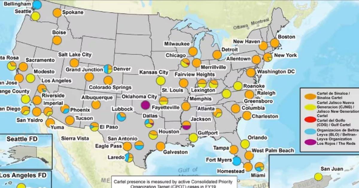 Explicó que los estados de EE.UU. donde había una mayor presencia del Cártel de Sinaloa y el CJNG, eran Arizona, California, Carolina del Norte, Colorado, Georgia, Illinois, Maine, Nueva York, Nuevo México, Texas.