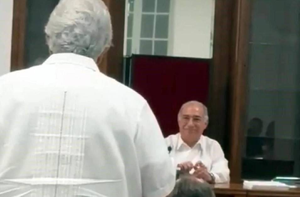 Durante la conferencia magistral “La defensa de la Constitución”, que ofreció el Ministro en la Casa de la Cultura Jurídica en Mérida, Yucatán, el Magistrado en retiro tomó el micrófono entre el público, para reprocharle las consecuencias de la reforma judicial.