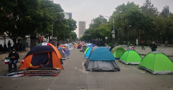 Ciudad de México.– Centenares de tiendas de campaña quedaron instaladas sobre la avenida Juárez en la Ciudad de México, para protestar contra el Presidente Andrés Manuel López Obrador y pedir su renuncia.