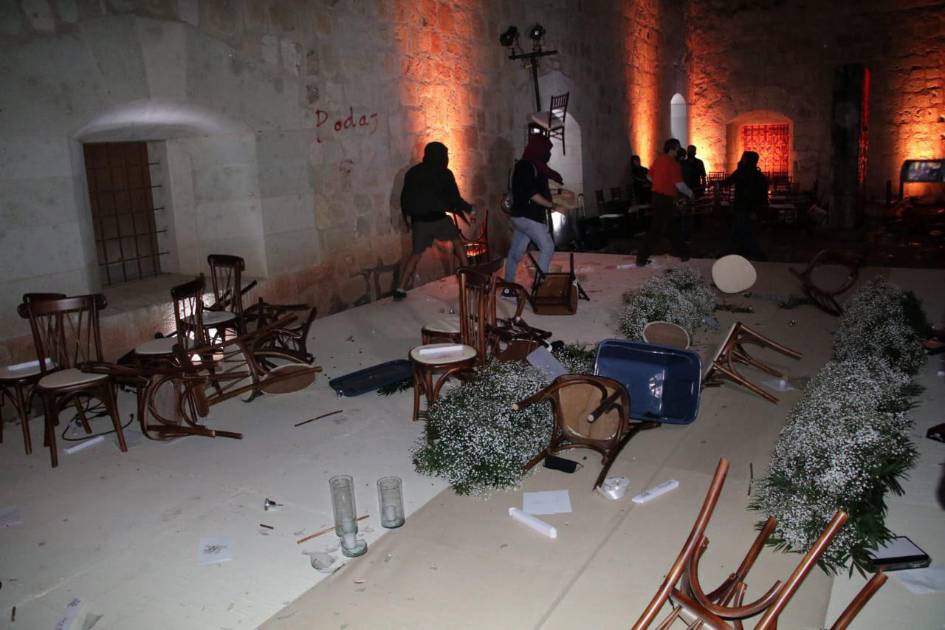 Destrozan #Boda de Elba Esther, en #Oaxaca, maestros de la Sección XXII de la CNTE, llegan al Jardín Etnobotanico minutos antes de iniciar la ceremonia, a la fuerza irrumpen y vandalizan todo a su paso, mesas, sillas y arreglos salieron volando. pic.twitter.com/7UgMBHaeR9