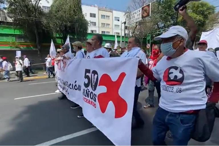 De los contingentes que marcha destacan: líderes del 68, agrupaciones sindicales, estudiantes de la UNAM y politécnicos.