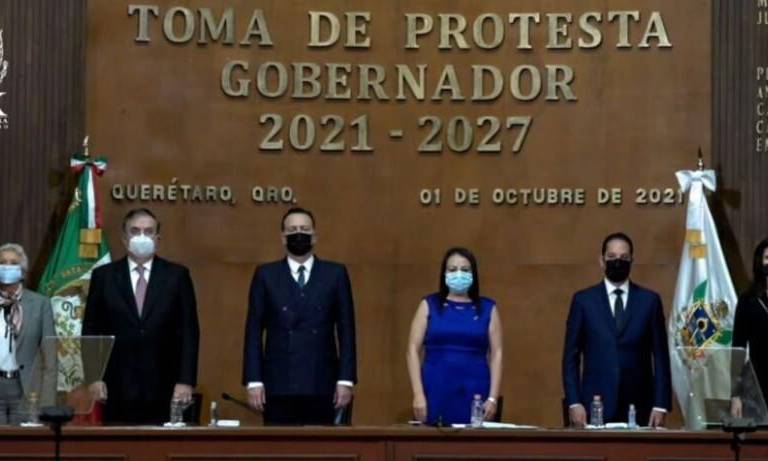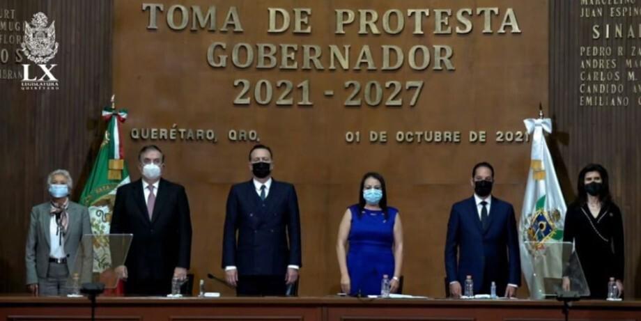 El mandatario estatal rindió protesta durante la Sesión Solemne del Pleno de la 55 Legislatura del Congreso de Querétaro, acto en el cual estuvieron presentes Marcelo Ebrard Casaubón, titular de la Secretaría de Relaciones Exteriores (SRE) y la presidenta de la Mesa Directiva del Senado, Olga Sánchez Cordero Dávila.