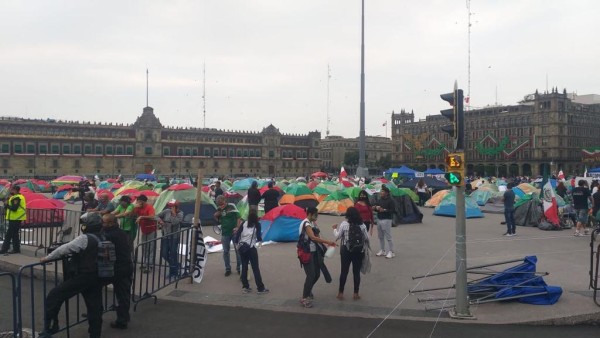 Cae la noche en el Zócalo y nadie se mueve a pesar de que el miércoles fue un día intenso de marcha, pequeños empujones con la policía y la victoria simbólica de alcanzar la plaza que un juzgado había otorgado. En los días previos, cuando el plantón estaba en la avenida Juárez, muchas de las tiendas estaban vacías. La lluvia fue inclemente, sobre todo el domingo, por lo que algunos de los manifestantes optaron por marcharse a casa para dormir sin temor a resfriarse y regresar durante el día para mantener la protesta.