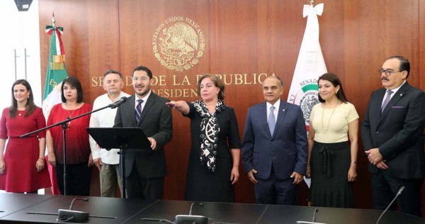 La hermana del subcomandante Marcos juramento al cargo ante Martí Batres Guadarrama, presidente de la Mesa Directiva de la Cámara Alta.