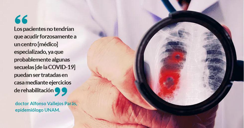 Pese a que habrá secuelas leves o medias que puedan ser tratadas desde casa, Vallejos Parás explicó que uno de los retos en México será disponer de equipo y personal médico suficientes para brindar la primera atención, recomendar el tipo de rehabilitación necesaria y dar seguimiento a casos, máxime considerando la situación en la que así como “algunas secuelas afectarán al 20 o 30 por ciento de la población infectada y recuperada, otras afligirán al dos por ciento de los casos”.