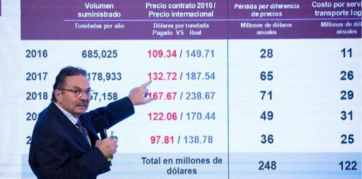 En 2017, el volumen suministrado aumentó casi 42 por ciento, hasta un millón 178 mil 933 toneladas por año. La pérdida por diferencia de precios ascendió a 65 millones de dólares (mdd) anuales, con un costo de transportación de 26 millones de dólares en el mismo periodo.