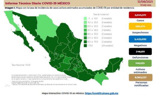 Además, confirmó 608 muertes más, por lo que Salud reconoce al menos 246 mil 811 defunciones por COVID.