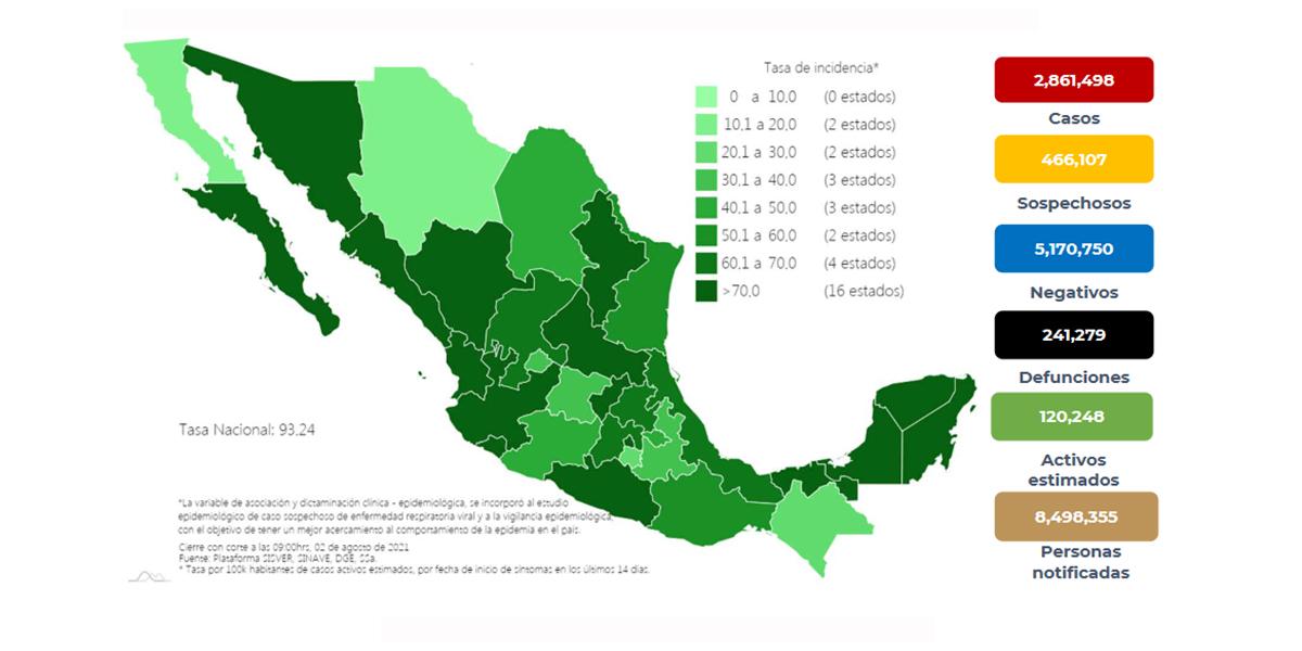 Además, la dependencia confirmó 245 muertes más por Covid, para un total de 241 mil 279 defunciones reconocidas por la enfermedad.