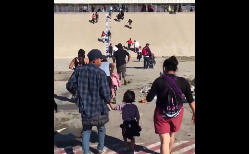 Imágenes de televisoras permiten observar cómo algunos de los migrantes llegaron a la zona de la valla metálica, y la escalaron para quedarse en la parte superior de ella, observando desde ahí ya el territorio estadounidense, aunque del otro lado ya están los elementos de seguridad.