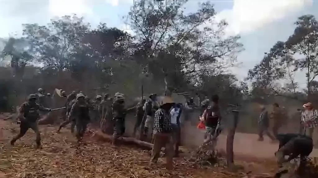 Ante ello, los soldados y campesinos se enfrentaron. Los militares usaron gases lacrimógenos, mientras que los ejidatarios se defendieron con palos y piedras. Según lo reportaron medios locales, el hecho provocó el desplazamiento de personas.