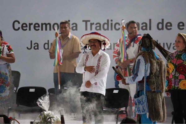En su mensaje, Aguilar señaló que los pueblos indígenas son las raíces más profundas del país y el antecedente más lejano “que acoge a todos y a todas”, y por ello resaltó la importancia de que integrantes de las comunidades indígenas y afromexicanas entreguen hoy los bastones de mando.