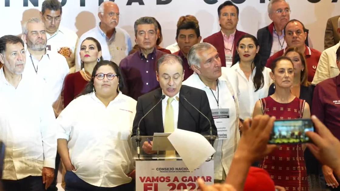 El encargado de compartir estos acuerdos fue Alfonso Durazo, presidente del Consejo Nacional de Morena, escoltado por gobernadores, integrantes de Morena y los cuatro aspirantes presidenciales: Claudia Sheinbaum, Marcelo Ebrard, Adán Augusto López y Ricardo Monreal.