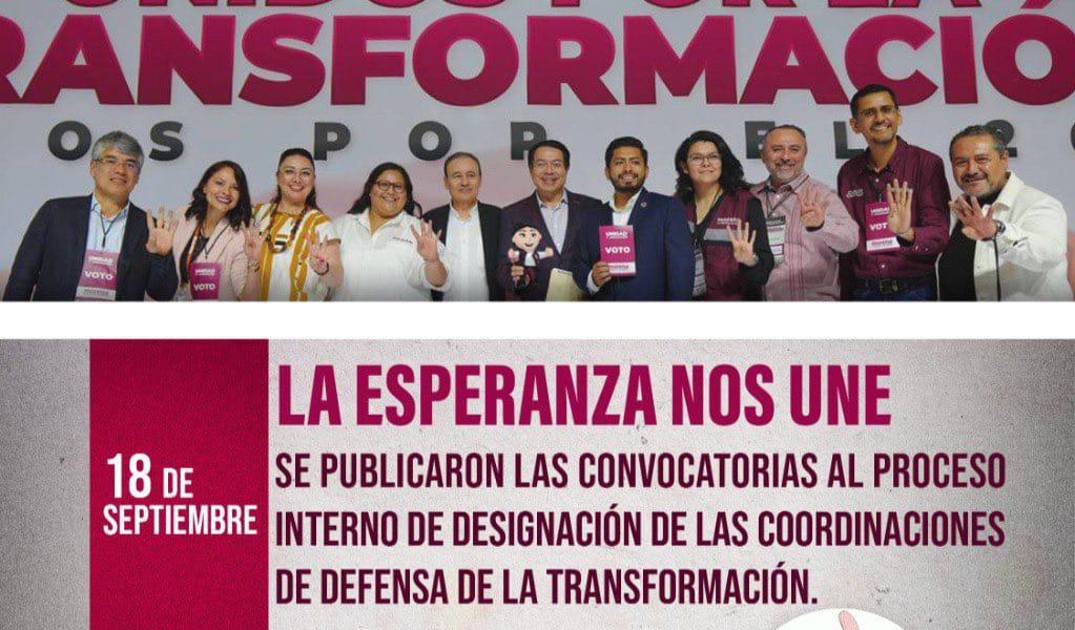 “En sesión del Comité Ejecutivo Nacional de @PartidoMorenaMx aprobamos las CONVOCATORIAS AL PROCESO INTERNO DE DESIGNACIÓN DE LAS COORDINACIONES DE DEFENSA DE LA TRANSFORMACIÓN”, indicó Mario Delgado Carrillo, en su cuenta de la red social X, este martes.