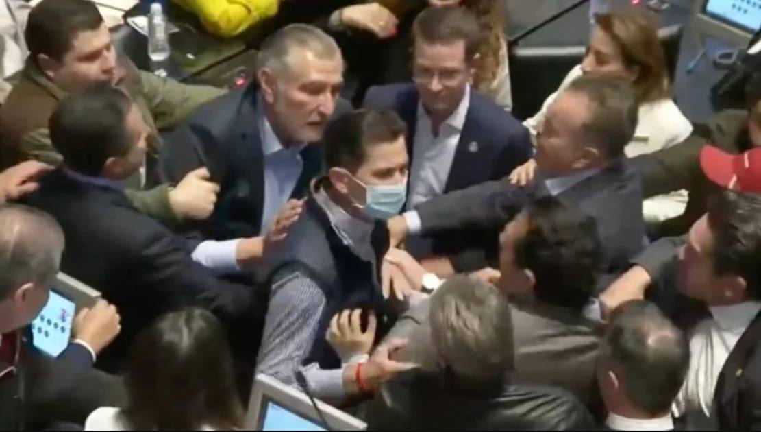 “Aquí o donde te vea te voy a partir tu madre”, amenazó Yunes Márquez, en respuesta, rodeado por unos 10 legisladores de Morena, entre otros, por López Hernández y Luis Fernando Salazar Fernández, quien llegó a empujar y sujetar por el cuello al panista Enrique Vargas del Villar, a quien amagó con darle un puñetazo, pero Manuel Velasco Coello, coordinador del Partido Verde Ecologista de México, se interpuso entre ambos.