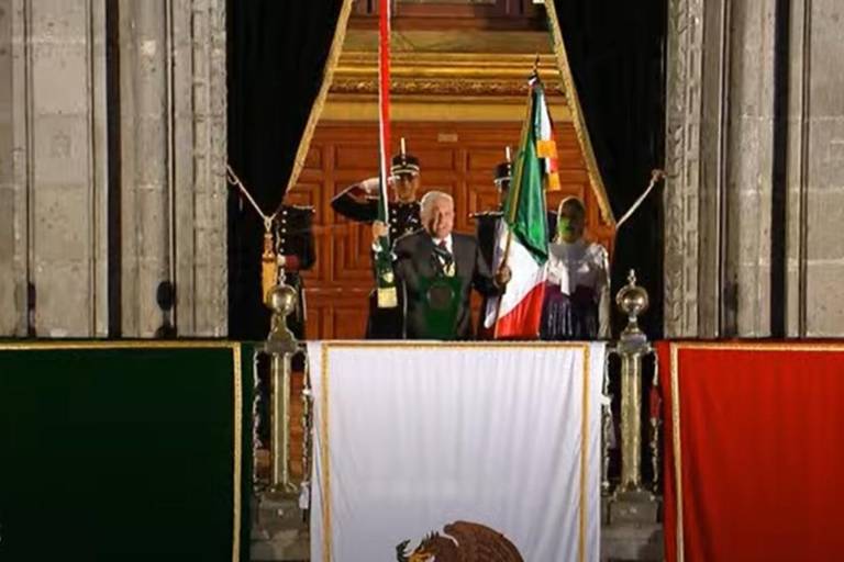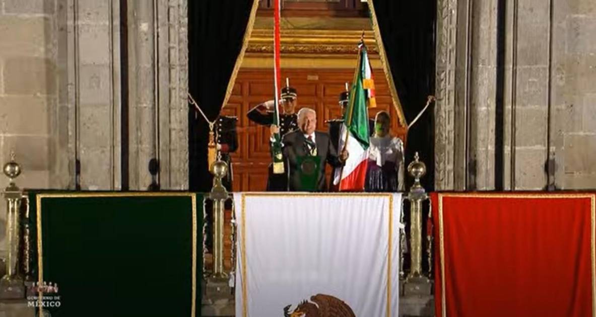 Sin la presencia de las representantes de los otros dos poderes de la Unión: Norma Lucía Piña Hernández, del Judicial, y de Marcela Guerra Castillo, del Legislativo, pero acompañado de su esposa Beatriz Gutiérrez Müller, el titular del Poder Ejecutivo Federal recibió la Bandera de México de manos de cadetes del Colegio Militar, para después asomarse al balcón central del Palacio Nacional para dar el grito, en conmemoración del 213 aniversario del inicio de la Independencia de México.
