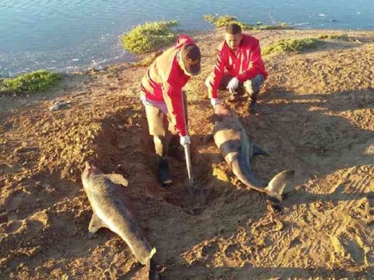 Los delfines muertos serán sepultados conforme lo establece el Protocolo de Atención para Varamiento de Mamíferos Marinos, publicado en el Diario Oficial de la Federación el 17 de junio de 2014.