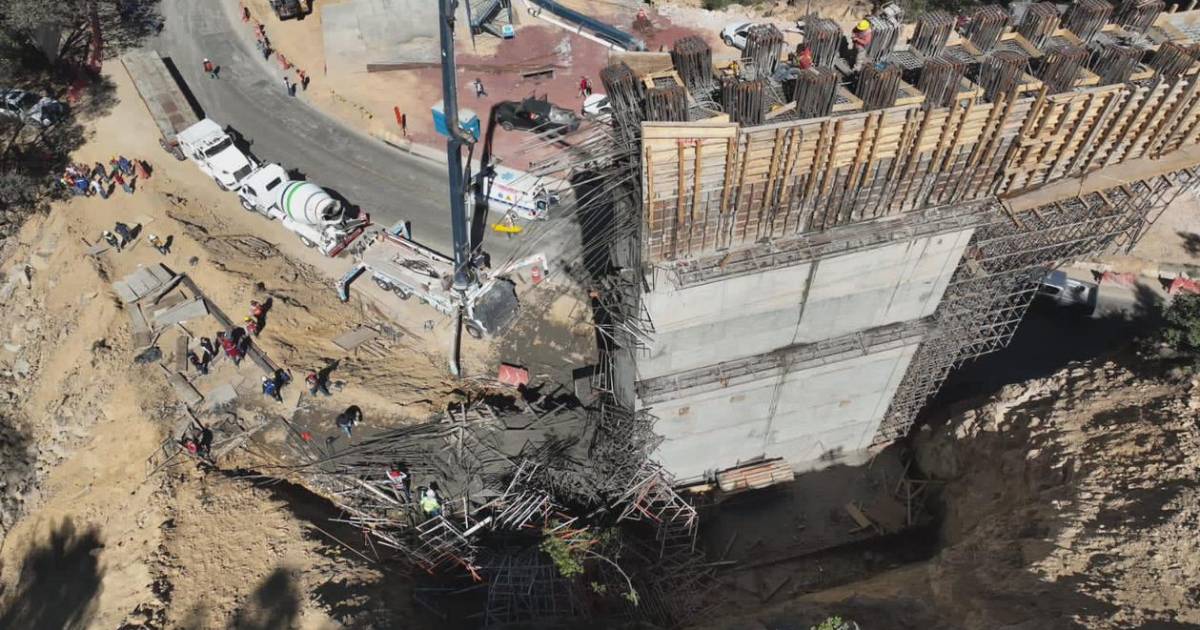 Se detalló que se realizaba un colado de 40 metros cúbicos de más de 100 toneladas de concreto, en pila de 15 metros de altura, donde trabajaban ocho personas en el momento en que colapsó el andamio que soportaba la cimbra, el acero, el concreto y a los trabajadores.