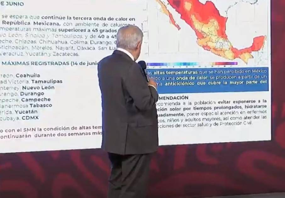 El mandatario nacional detalló que ese mismo día continuaría la tercera ola de calor, que derivaría en temperaturas máximas superiores a los 40 grados Celsius en: Campeche, Chiapas, Chihuahua, Coahuila, Colima, Durango, Guerrero, Hidalgo, Jalisco, Michoacán, Morelos, Nayarit, Nuevo León, Oaxaca, San Luis Potosí, Sinaloa, Sonora, Tabasco, Tamaulipas, Veracruz, Yucatán y Zacatecas.