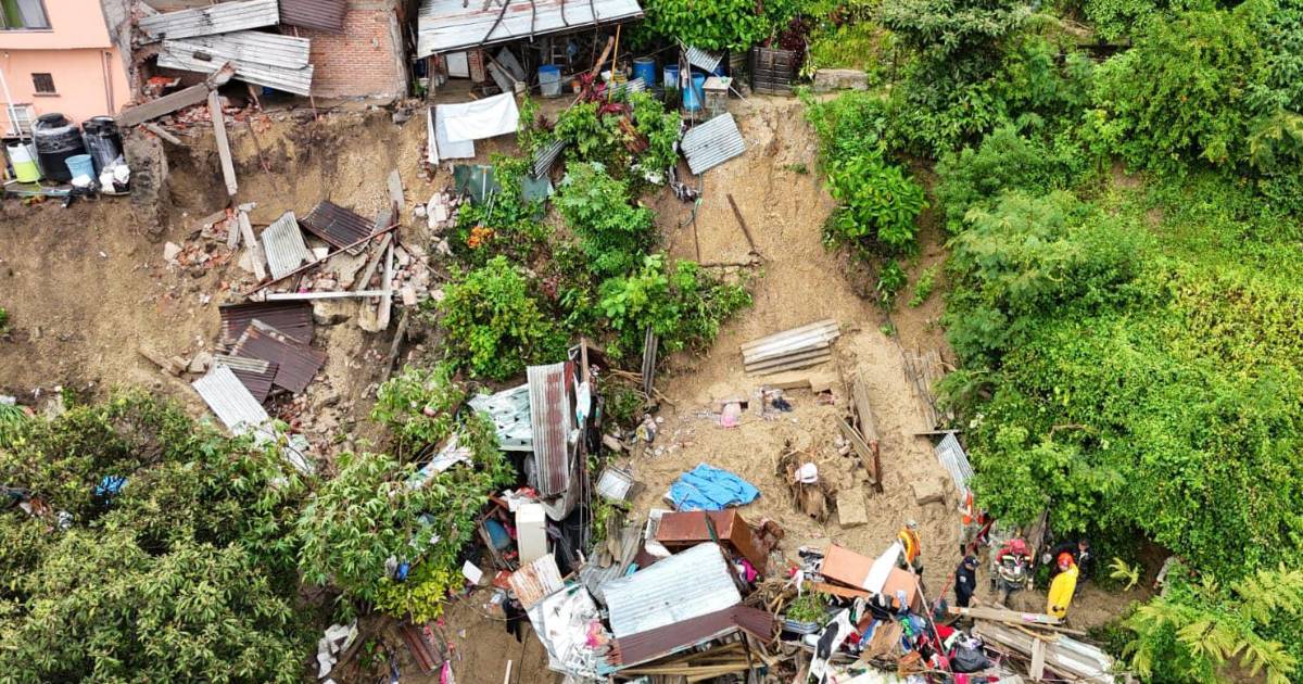 Se informó que al menos cuatro casas resultaron afectadas por el colpaso de la pared tras el reblandecimiento del terreno a causa de la lluvia.