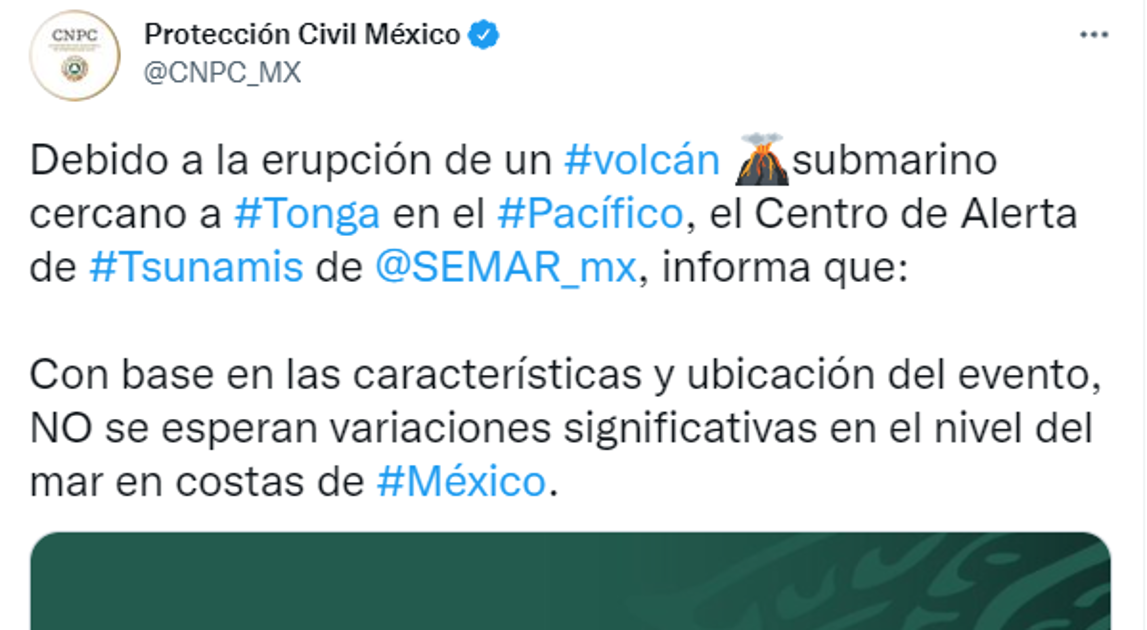 — Protección Civil México (@CNPC_MX) January 15, 2022