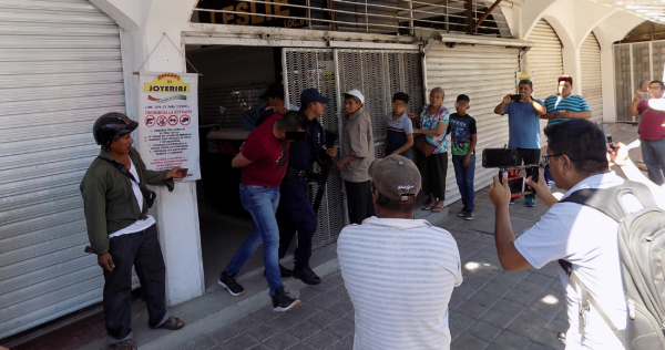 Al mismo tiempo los agentes de las distintas corporaciones se trasladaron al lugar y se enteraron que “personas que vestían playeras (camisetas) y gorras negras y portaban armas de fuego cortas” ingresaron al mercado de joyas y lesionaron al guardia de seguridad con un golpe contuso en la cabeza.