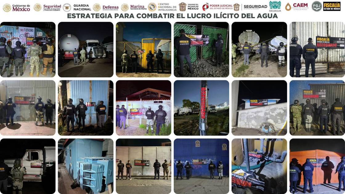 Tan solo en el Estado de México, el pasado fin de semana las autoridades de la fiscalía mexiquense informaron que hicieron operativos hasta en 48 municipios para desmantelar, junto a las fuerzas armadas, redes dedicadas a la sustracción ilegal y al comercio ilícito de agua.