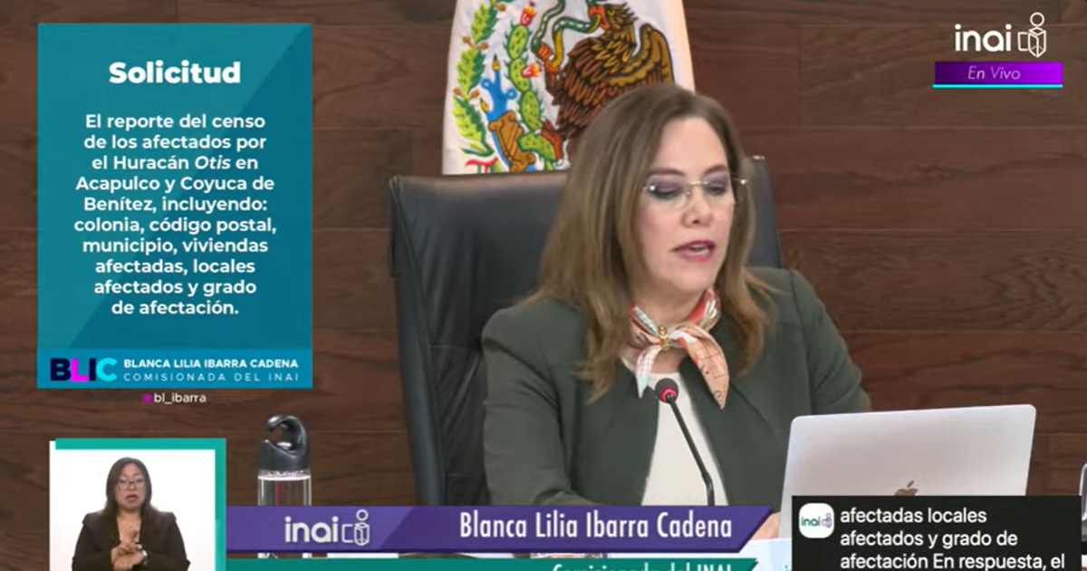 El Instituto Nacional de Transparencia, Acceso a la Información y Protección de Datos Personales instruyó a la Secretaría de Bienestar buscar y, en su caso, dar a conocer la expresión documental que dé cuenta del censo de personas afectadas por el huracán Otis, en Acapulco y Coyuca de Benítez, Guerrero.