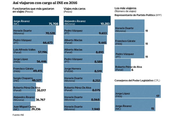 MÉXICO (UNIV)._ Un viaje a Cancún durante el puente del 1 de mayo; otro a Huatulco, a fin de año, y uno más a Puerto Vallarta, con cargo al Instituto Nacional Electoral, son algunos de los gastos reportados por los representantes de los partidos políticos ante el órgano electoral durante 2016.