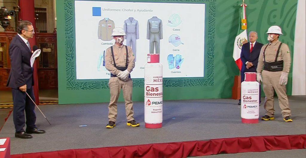 “¿Cuáles son las ventajas de Gas Bienestar? En primer lugar kilos de a kilo, los de 20, 20, y los de 40, 40. Para garantizar que no haya ordeña de estos tanques van a llevar un sello de autenticidad, otra ventaja es que son cilindros nuevos. Los usados van a ser sometidos a rehabilitación”, señaló el director general de Pemex.