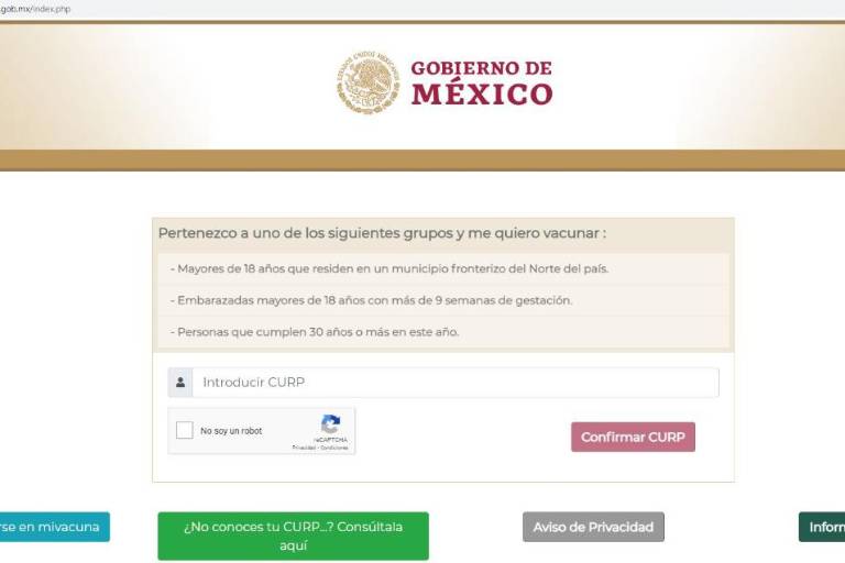 Para llevar a cabo el proceso, solo es necesario acceder a https://mivacuna.salud.gob.mx/index.php e ingresar la CURP, así como el resto de datos solicitados por el sistema.