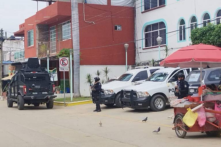 En la cabecera municipal se veía más flujo de gente, sin que esto significara que todo está bien. «No queda de otra, tiene que trabajar la gente para poder comer», dijo una señora que observaba las operaciones de los policías estatales a un costado del Ayuntamiento.