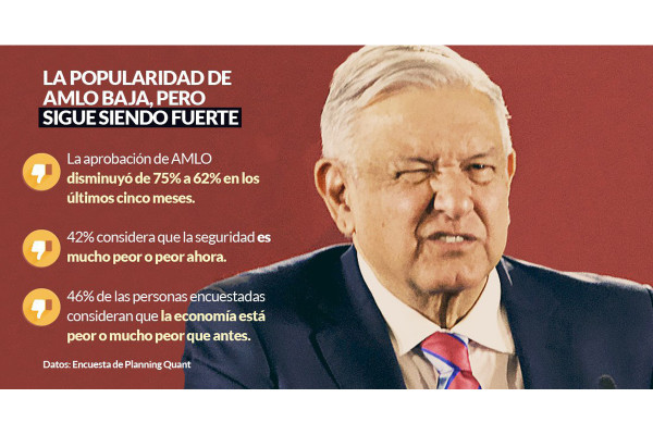 "Popularidad de AMLO baja de 75 a 62% en los últimos meses; violencia y economía, lo que más le golpea"