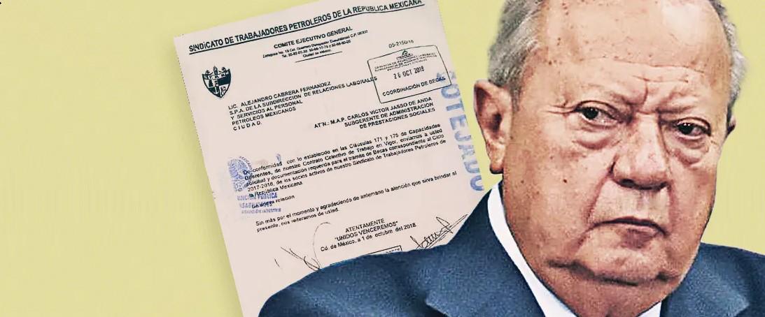 Las solicitudes que utilizó la dirigencia sindical para gestionar la prestación ante Pemex viene firmada por Carlos Romero Deschamps y dirigido el oficio a Alejandro Cabrera, entonces subdirector de Relaciones Laborales de la petrolera, quien en 2020 fue despedido luego de ser captado en video comiendo con el ex líder sindical.
