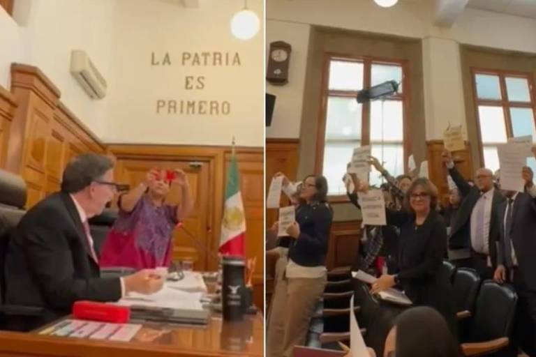 Así, ambos grupos -a favor y contra de la reforma judicial- se manifestaron dentro de la Segunda Sala del máximo tribunal constitucional, pero después todos se retiraron para permitir que se llevara a cabo la sesión pública.
