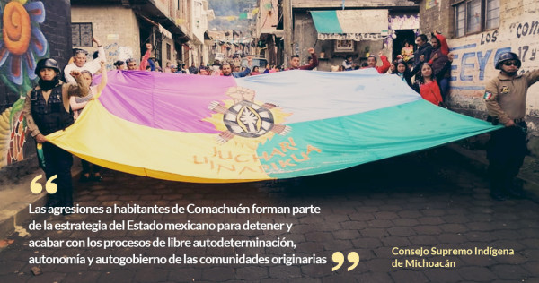 La localidad purépecha ubicada en el municipio de Nahuatzen obtuvo desde agosto de 2018 el reconocimiento del Tribunal Electoral estatal del Concejo de Gobierno Comunal de Comachuén (CGCC), lo que les permitió recibir directamente el presupuesto asignado, decidir cómo usarlo y elegir a sus autoridades. Pero en los últimos meses la violencia hacia sus representantes se incrementó, muestra de ello es que el 19 de noviembre un grupo de personas intentó entrar a la fuerza a una casa donde estaban reunidas Eugenia Gabriel, una y un Concejal.