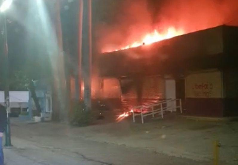 Posteriormente, otros jóvenes lanzaron bomba molotov y ocasionaron un fuerte incendio en el edificio.