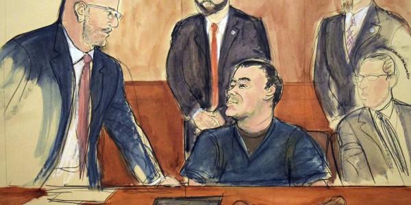 “En el juicio real, el gobierno de Estados Unidos está procesando a Joaquín Guzmán Loera, quien está acusado de ser uno de los narcotraficantes más grandes del mundo. Según los fiscales, Guzmán obtuvo hasta 14 mil millones de dólares como líder del Cártel de Sinaloa, una fortuna que supuestamente protegió con sobornos exorbitantes y un ejército de asesinos profesionales. Sin embargo, en una suerte de segundo juicio, los abogados de Guzmán básicamente están encausando al Gobierno de México. Según lo que dicen, la policía y los políticos del país no solo son corruptos, sino que también han conspirado durante años con el socio de Guzmán, Ismael Zambada García, para incriminar a ‘El Chapo’ a cambio de cuantiosos sobornos”, dijo Alan Feuer.