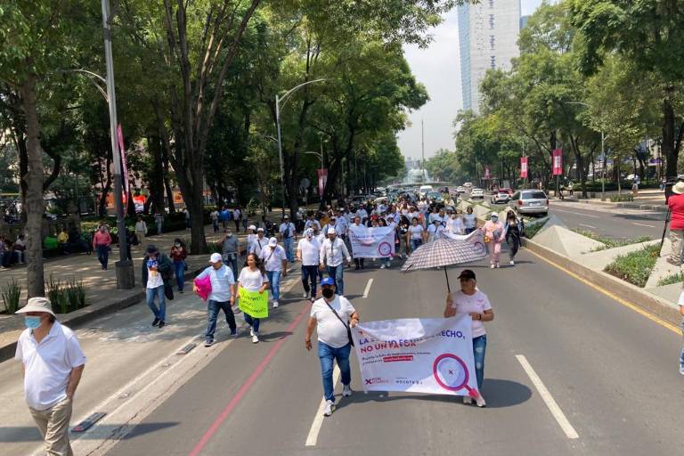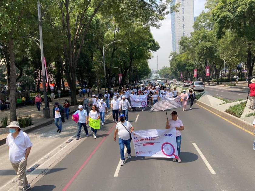 Los manifestantes -que salieron del Auditorio Nacional e irían a Palacio Nacional- exigen al presidente Andrés Manuel López Obrador que garantice el abasto de medicinas para tratar el cáncer. Sin embargo, el mandatario se encuentra de gira por el Estado de México y Nayarit.
