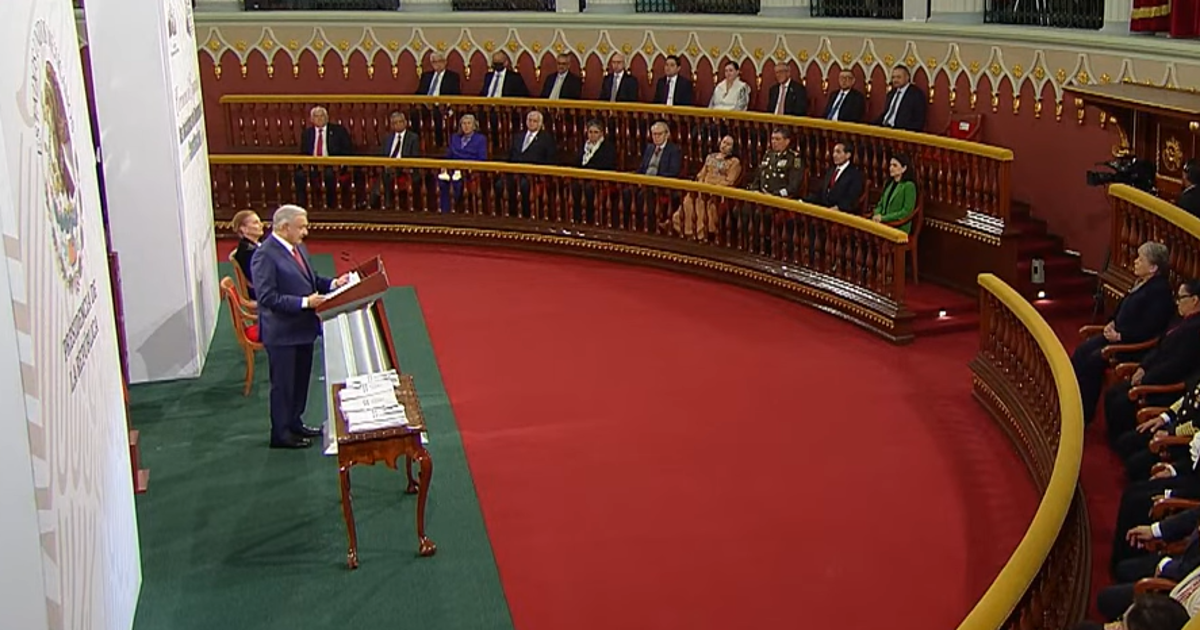 “El Congreso de la Unión se integrará por 300 diputados, no por 500, y el Senado por 64 senadores y no 128”, anunció López Obrador.