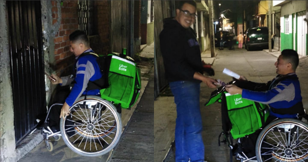 "Repartidor de Uber Eats entrega pedidos a bordo de su silla de ruedas en Morelia y conquista la red"
