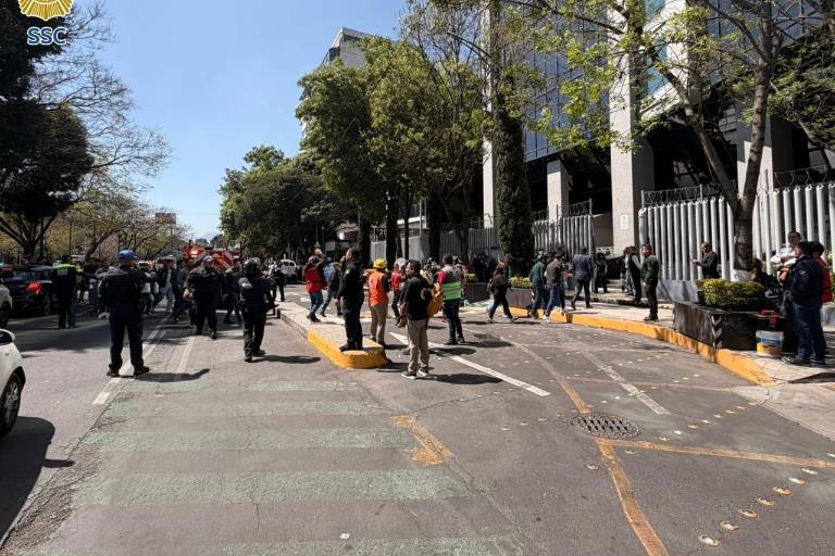 La Secretaría de Seguridad Ciudadana de la Ciudad de México informó que los uniformados apoyaron a evacuar a los trabajadores y realizaron una revisión exhaustiva en todas las zonas del edificio, estacionamientos, baños, oficinas, entre otros.