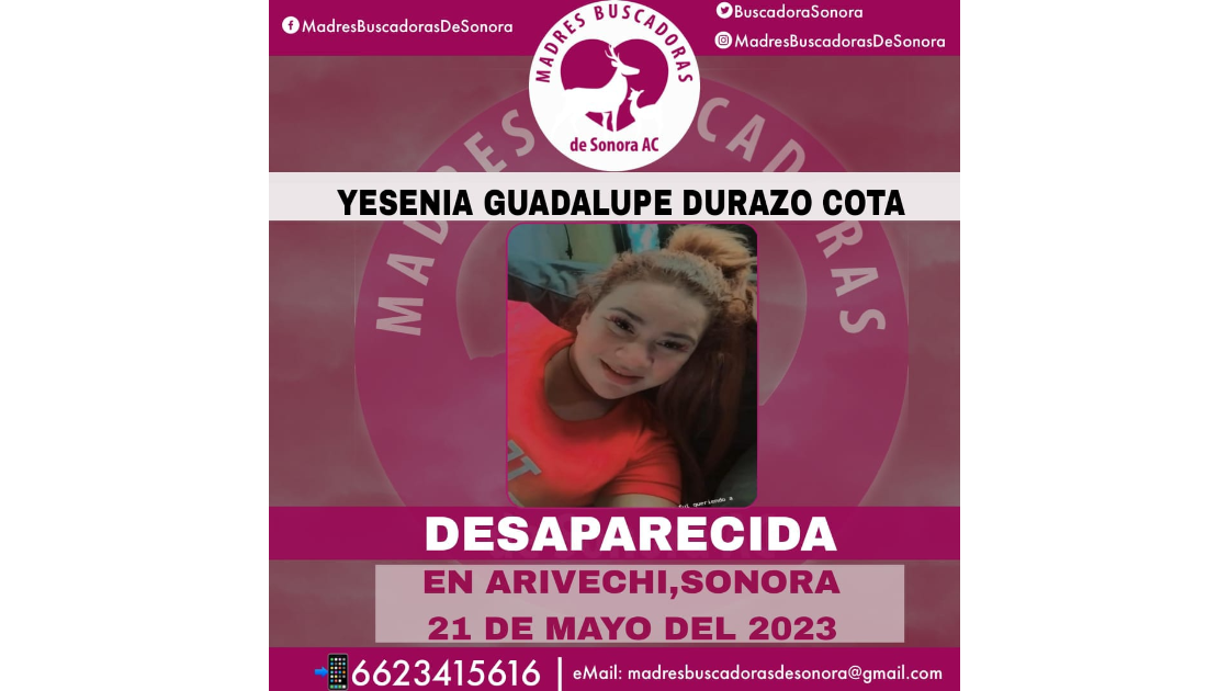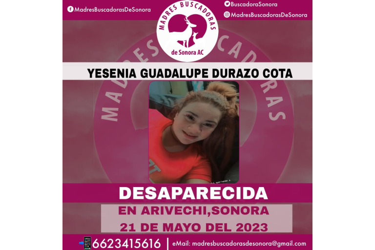 Yesenia Guadalupe Durazo Cota, esposa buscadora de Sonora, de 33 años, está desaparecida, informó este miércoles Ceci Flores, fundadora del colectivo Madres Buscadoras de Sonora.