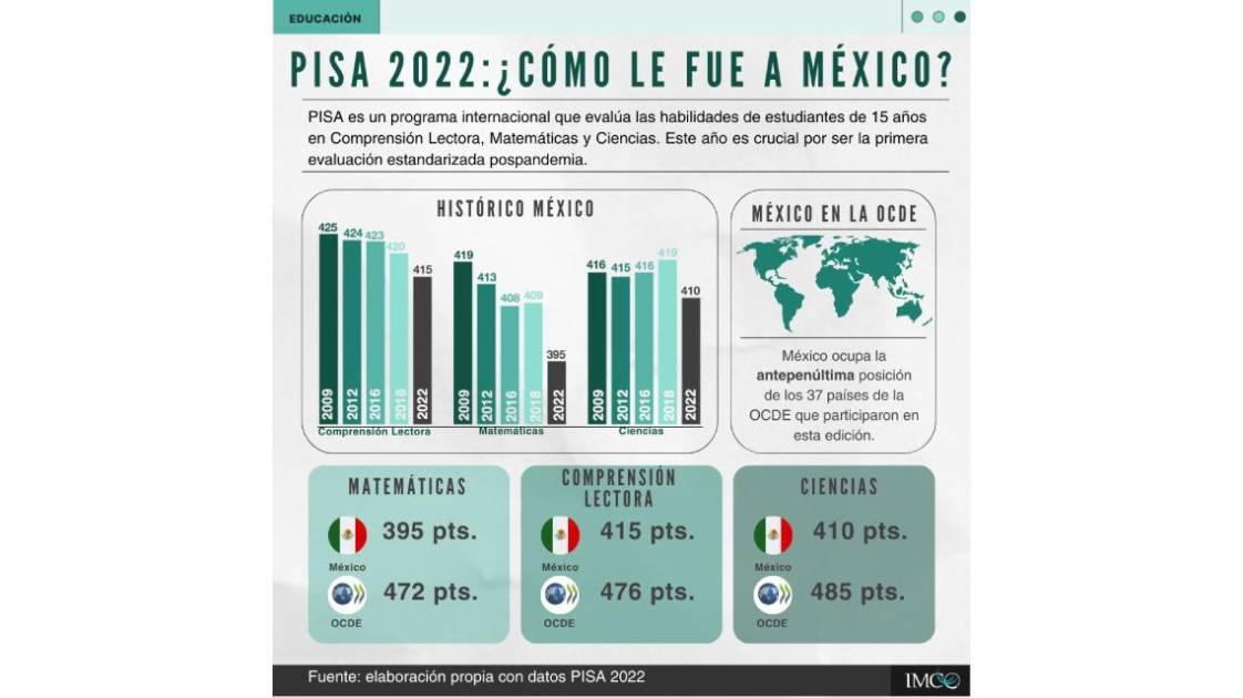 De acuerdo con un primer análisis de Mexicanos Primero sobre los resultados de la prueba que evalúa los conocimientos y habilidades para resolver problemas de la vida cotidiana y enfrentar los desafíos de la sociedad del futuro de estudiantes los países miembros de la OCDE, se muestra que en los últimos 10 años el porcentaje de adolescentes que se quedaron en el nivel más bajo de competencia aumentó de 55 a 66 por ciento en matemáticas, de 40 a 47 por ciento en lectura y de 47 a 51 por ciento en ciencias.