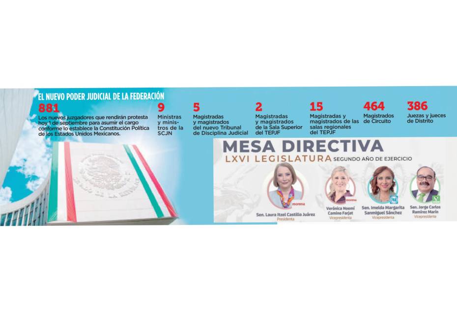 MÉXICO._ Este lunes 1 de septiembre es el inicio de una nueva era en la vida pública de México. Este día, en Sesión Solemne del Senado de la República, asumirá por primera vez funciones un Poder Judicial de la Federación electo por voto popular el pasado 1 de junio en el inédito proceso electoral extraordinario 2024-2025.
