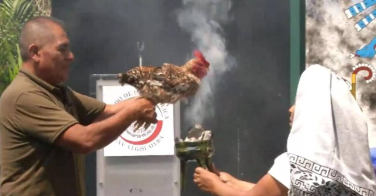 Sacrifican una gallina en el Senado; anuncian sanción para legislador que promovió ritual