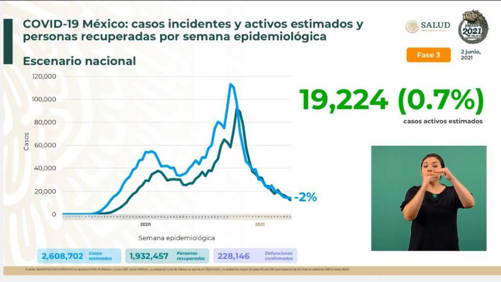 Sin embargo, se estima que 19 mil 224 (un 0.7%) son casos activos de COVID por presentar síntomas en los últimos 14 días.